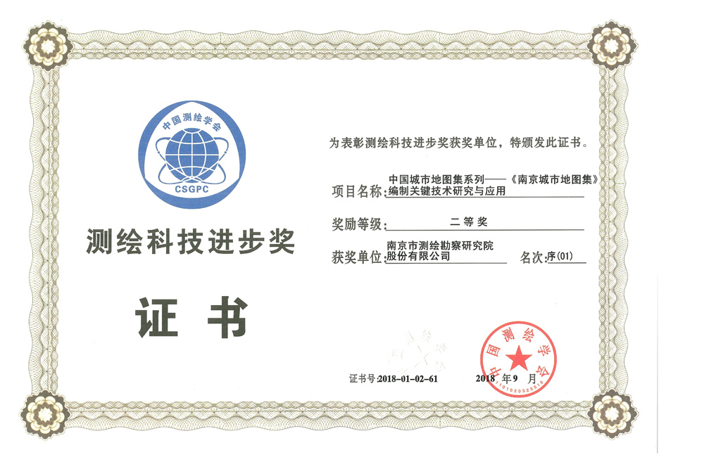 全國測繪科技進(jìn)步二等獎——中國城市地圖集系列-《南京城市地圖集》編制關(guān)鍵技術(shù)研究與應(yīng)用