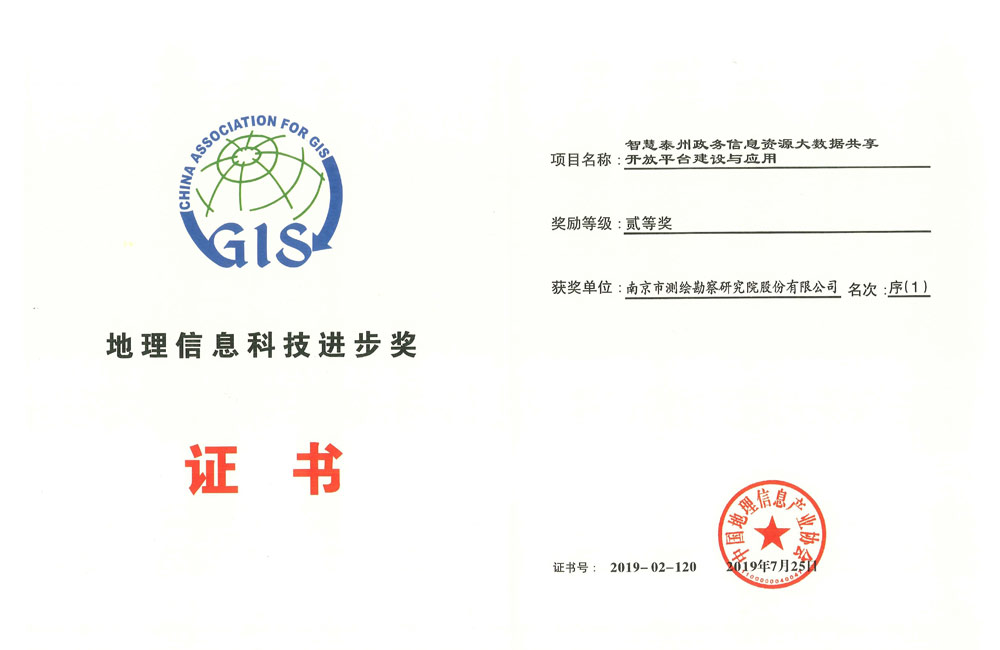 中國地理信息科技進(jìn)步二等獎——智慧泰州政務(wù)信息資源大數(shù)據(jù)共享開放平臺建設(shè)與應(yīng)用