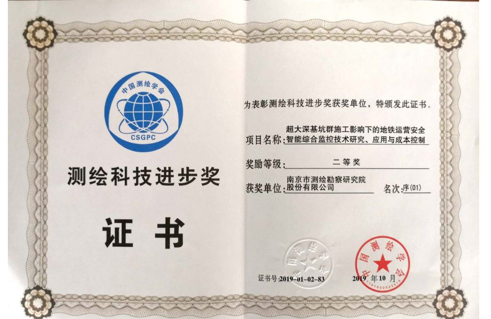 全國測繪科技進(jìn)步二等獎——超大深基坑群施工影響下的地鐵運營安全智能綜合監(jiān)控技術(shù)研究、應(yīng)用與成本控制