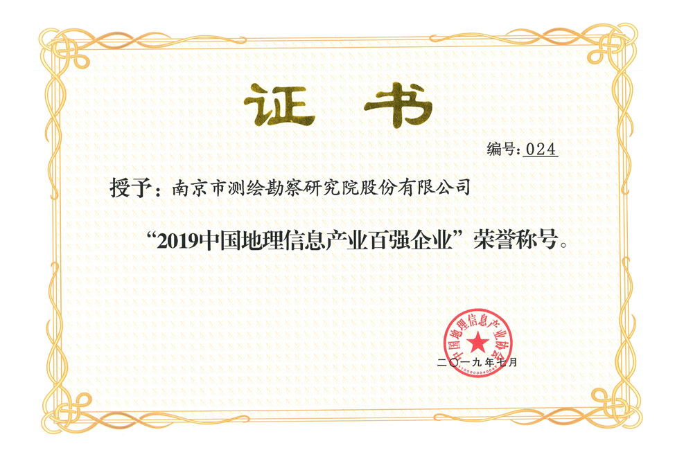 2019年中國地理信息產(chǎn)業(yè)協(xié)會百強(qiáng)企業(yè)