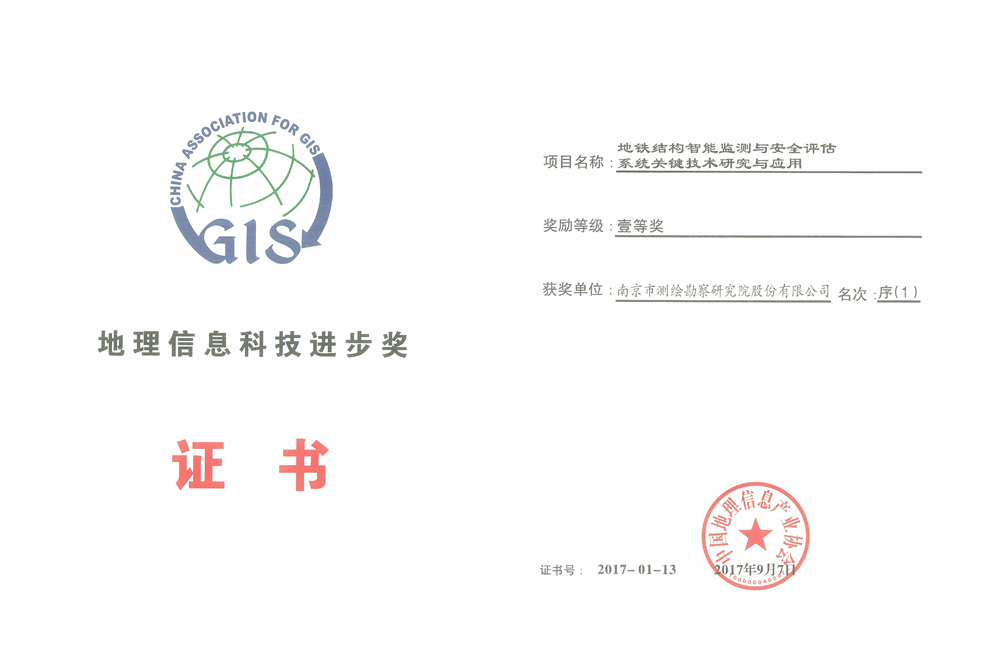 中國地理信息科技進(jìn)步一等獎——地鐵結(jié)構(gòu)智能監(jiān)測與安全評估系統(tǒng)關(guān)鍵技術(shù)研究與應(yīng)用