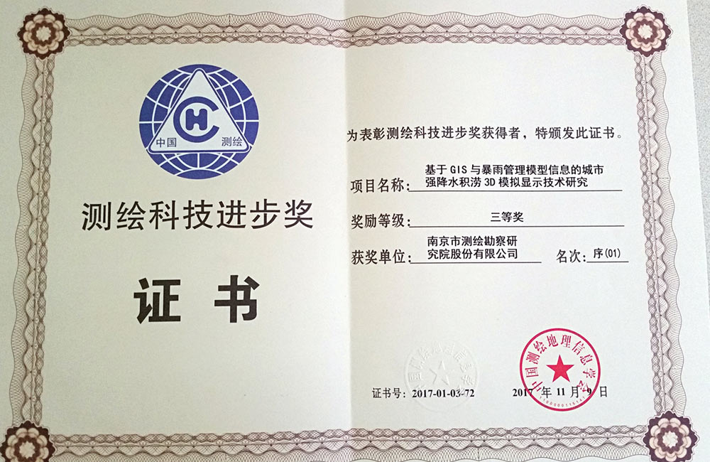 全國測繪科技進(jìn)步三等獎——基于GIS與暴雨管理模型信息的城市強(qiáng)降水積澇3D模擬顯示技術(shù)研究