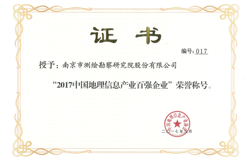 2017中國地理信息產(chǎn)業(yè)百強(qiáng)企業(yè)