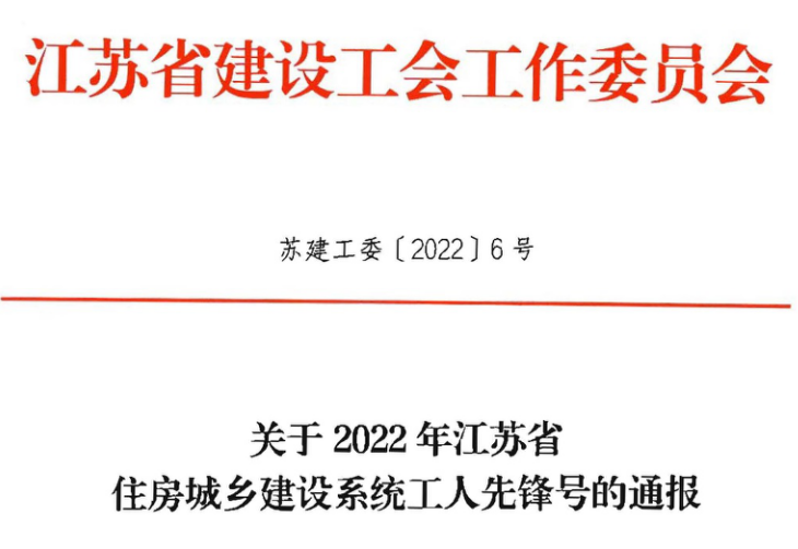 近日,江蘇省建設(shè)工會(huì)工作委員會(huì)發(fā)布了《關(guān)于2022年江蘇省住房城鄉(xiāng)建設(shè)系統(tǒng)工人先鋒號(hào)的通報(bào)》,表彰了一批以“一流工作、一流服務(wù)、一流業(yè)績(jī)”為主要內(nèi)容的工人先鋒號(hào)...